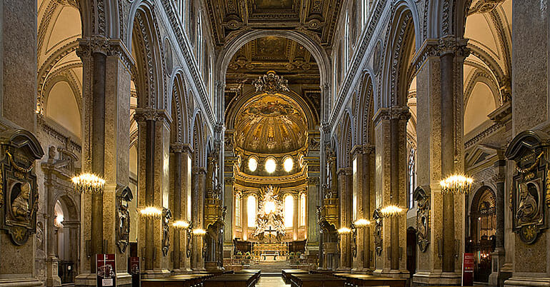 Proseguendo per via dei Tribunali si arriva al Duomo e alla Cappella del Tesoro di San Gennaro, dove è possibile ammirare gli innumerevoli tesori d’arte donati nel corso dei secoli dai sovrani saliti al trono del Regno di Napoli.